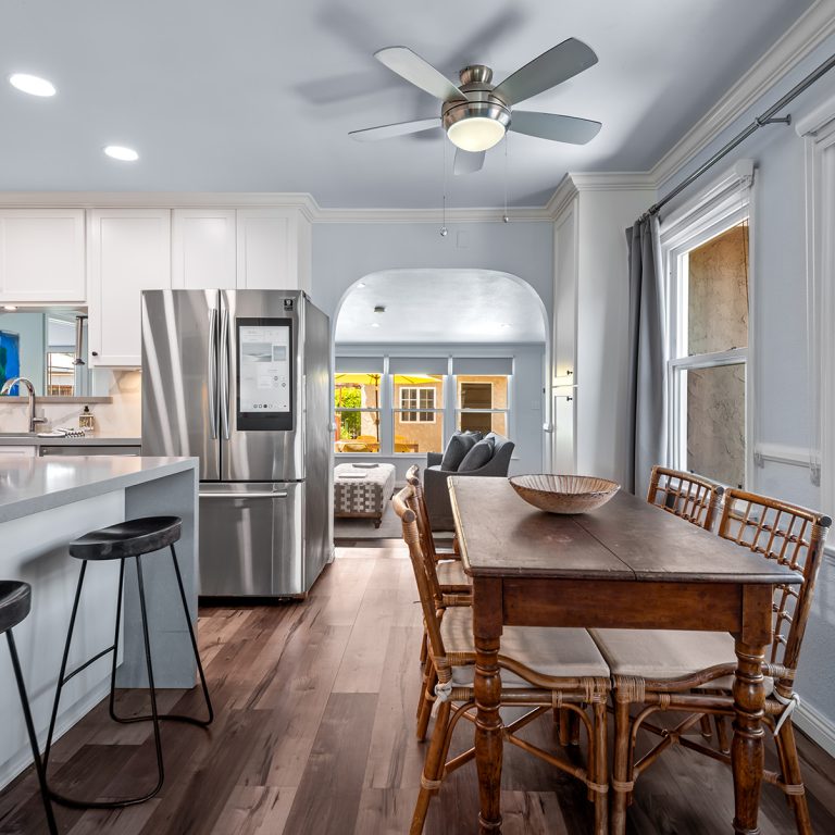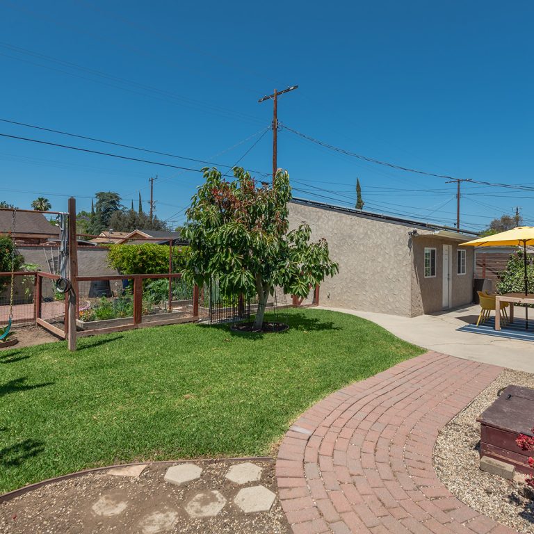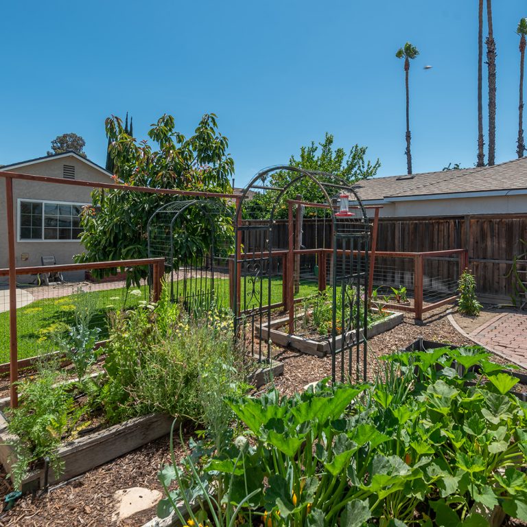 Stepping outside, the backyard becomes a gardener’s paradise with a flourishing veggie and herb garden, as well as mature citrus trees. The patio area serves as an ideal setting for outdoor gatherings and entertaining, creating opportunities for memorable moments. A large 2-car garage extends beyond parking, featuring an additional dedicated space that can be utilized as a functional workshop or an inspiring artist’s studio, catering to hobbies and projects. EV charging is easily accessible from the front driveway, which sits securely behind a gated entrance.
