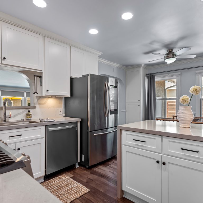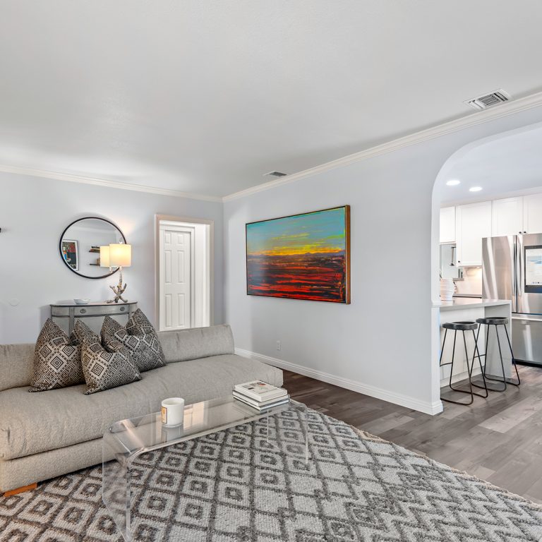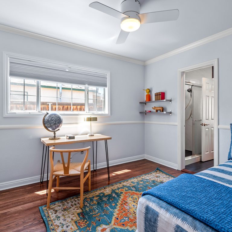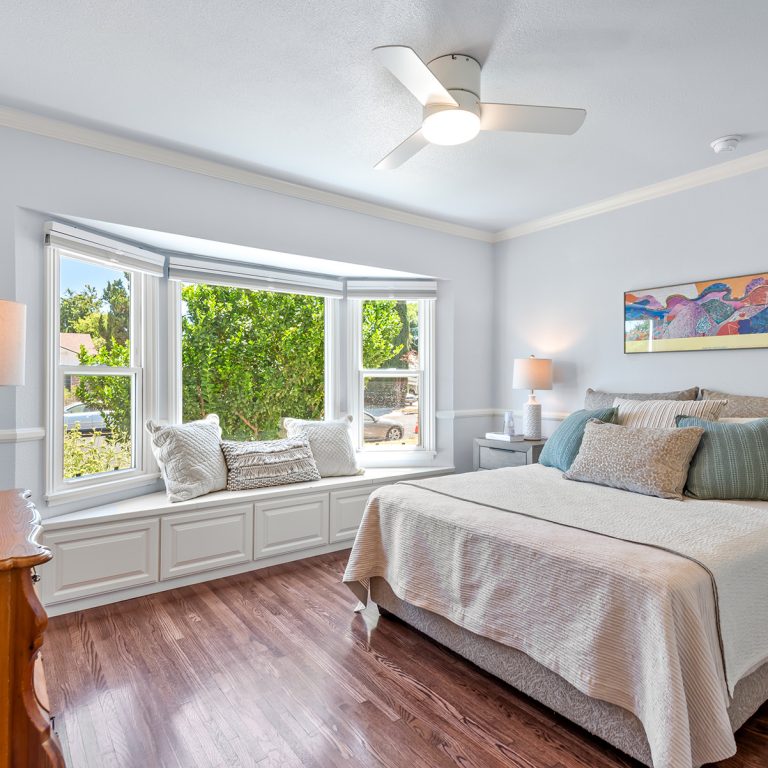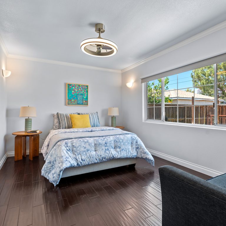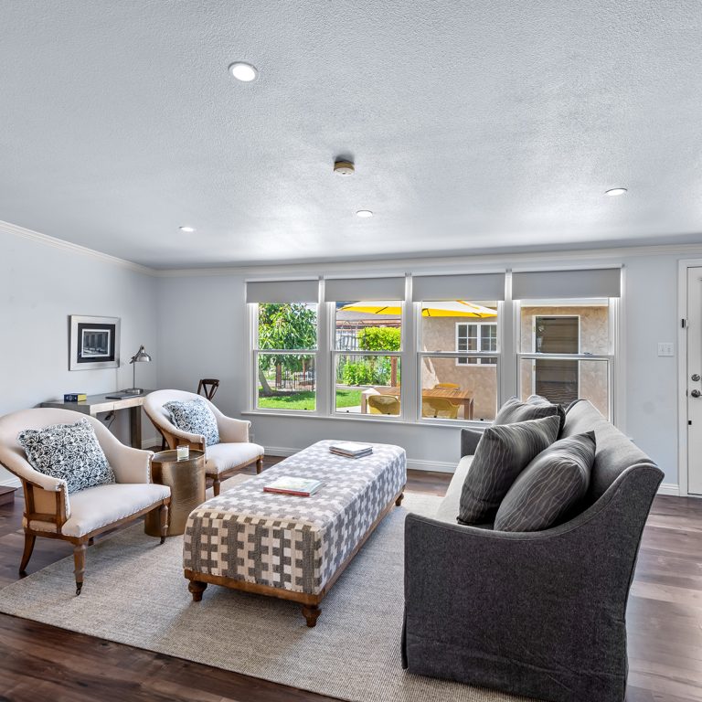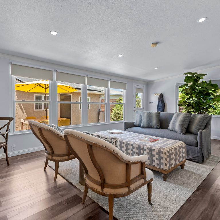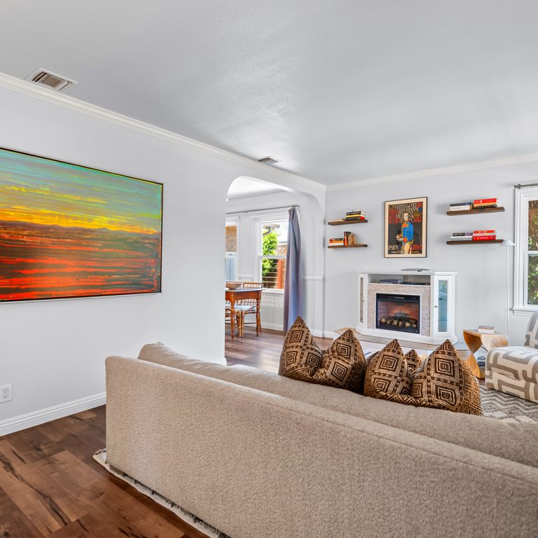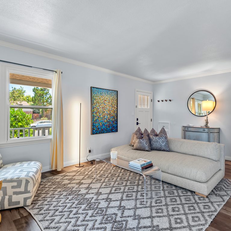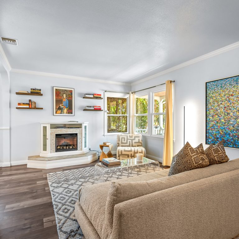 Welcome to a delightful California traditional home, where an inviting porch sets the stage for charm and warmth. Step into the living room which offers a comforting ambiance with a centerpiece cozy fireplace, ideal for relaxing evenings. The heart of the home lies in the updated kitchen, showcasing sleek stainless steel appliances and a stylish peninsula with bar seating, seamlessly flowing into the bright dining area. An open floor plan enhances the spacious feel, leading to the large step down family room flooded in abundant natural light and providing a picturesque view of the backyard. Two comfortably sized bedrooms share a convenient Jack and Jill bathroom. The primary bedroom is generous in size and features ample closet space and a charming bay window that adds architectural interest.